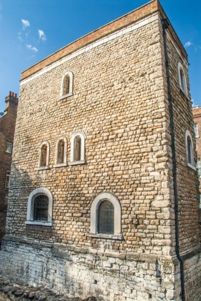 The new tower stood at one end of a garden, with a moat on two sides. The master mason was Henry Yevele, one of the most prolific medieval architects and the man most responsible for the popularity of Perpendicular Gothic. The first floor was used as accommodation for the 'keeper', with the second and third floors used as secure storage areas. The second floor shows evidence of double-doors, suggesting that the most valuable items were stored there.