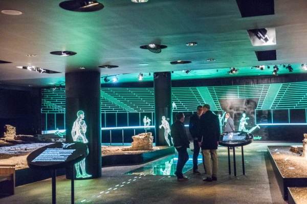 Only a part of the curving arena and its walls are available to explore, and the far side of the site is taken up with a large artwork showing banks of spectators looking down into the arena. The designers of the display have done a remarkable job of recreating the atmosphere of the original site; no mean feat when you consider that the entire structure is underground and much of it is still buried beneath the surrounding buildings.