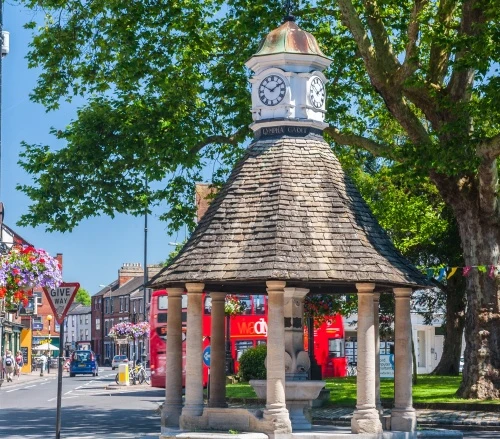 The fountain stands on the site of a graveyard that served the medieval church of St Clement. The churchyard was cleared in 1950 when The Plain became a roundabout. The church was pulled down in 1830 after it became too small to serve the area's increasing population and a new church was built on Marston Road.