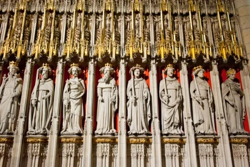 The Quire (Choir) of York Minster is a delight to the eye. The Quire Screen is one of the most intricately carved in all the UK, with depictions of famous churchmen set within niches facing the nave. Before passing through the Screen, look up, where the huge organ is poised above the screen. Recently refurbished, it boasts an astonishing 5,300 individual pipes.