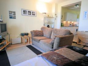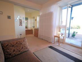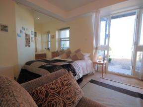 This apartment is set right on the cliff edge and is approached by a flight of stairs which takes guests to the lower-ground-floor accommodation. This being a studio apartment guests will find everything they need contained cleverly in one living space which is dominated by the spectacular views out to sea. In one corner of the room the kitchen area is well-equipped with an oven gas hob microwave fridge/freezer washing machine and dishwasher.
