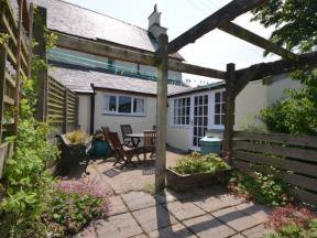 The bedrooms are accessed by a flight of cottage style stairs with one double bedroom and one bedroom with three single beds. The shower room features a double shower cubicle and WC. Outside there is a small private garden with seating.