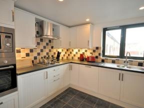 Once prepared enjoy sociable meals together in the dining area which features oak flooring and is open-plan to the lounge beyond. With French doors opening onto the patio this room is light and bright with three comfortable sofas and a TV/DVD for cosy nights in. There are five bedrooms firstly on the ground floor is a twin bedroom which can be made up as a super-king-size bed on request.