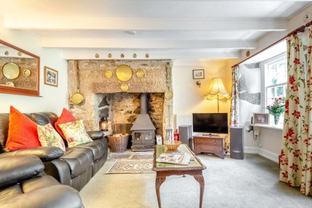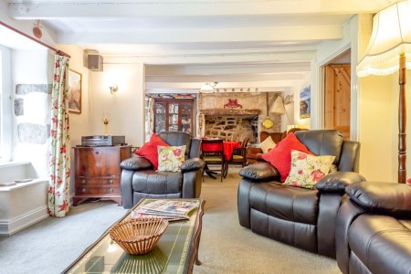 Enter into the porch and utility room, ideal for boots and beach equipment, before leading through into the well-equipped kitchen. From here after passing through the hallway you enter the relaxing homely living room which spans the entire width of the cottage, with wonderful old granite fireplaces at each end and beams adding to the character. With a woodburner for the cooler evenings and the comfortable dining area this is a room for all seasons.