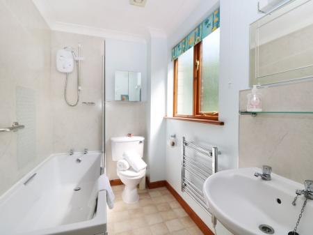 After a 200 mile drive I arrived at 3:30pm, just to see the cleaner leaving. This is a small 2 bedroom house, situated on a development of holiday homes. It is very pretty with lovely landscaped gardens. The house was well equipped with crockery, cutlery, cooking utensils, etc., even loads of washing tablets for the machine. The kitchen area is large, with electric cooker, microwave, kettle, toaster, etc. The ground floor is open plan, although the 'lounge' bit is a little small it is quite adequate. Upstairs, there is a double bedroom and a single, along with a bathroom with bath and shower.