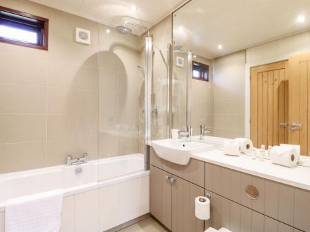 Two bedrooms: 1 x double with en-suite shower, basin and WC, 1 x twin - double on request - with en-suite shower over bath, basin and WC