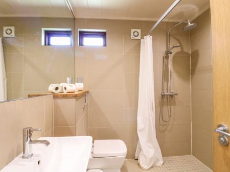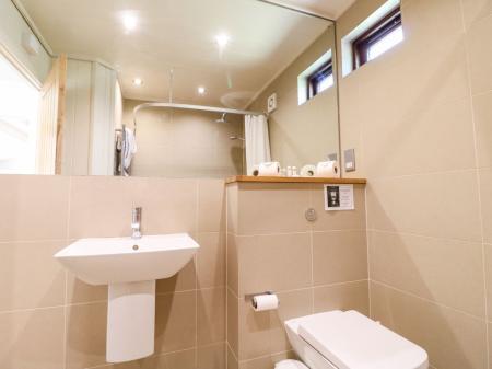 Two bedrooms: 1 x double with en-suite shower, basin and WC, 1 x twin - double on request - with en-suite shower over bath, basin and WC