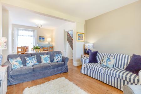 Downlea is a traditionally styled characterful cottage in a pretty, elevated spot in Looe resort, a 5 minute stroll from the buzzing harbour in coastal Looe resort. Set over two floors, the accommodation is well presented and comfortable, with an open-plan sitting room with comfy sofas and snuggly open fire for those cooler months, with a dining area perfect for foody get-togethers. The kitchen has all the appliances and leads to the enclosed terraced garden, with steps up to the paved patio (please supervise children) with garden furniture for sundowner drinks or sunshine morning latte.