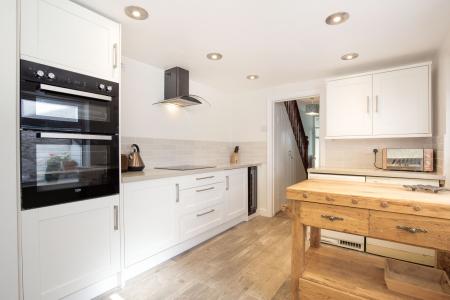 Gas oven and hob, microwave, fridge/freezer, washing machine, tumble dryer, dishwasher