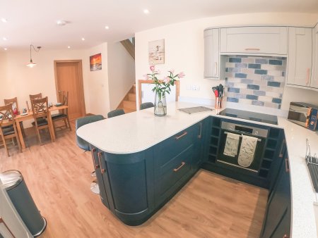 Electric oven and electric hob, fridge/freezer, dishwasher, washing machine, tumble dryer, TV and WiFi