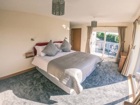 Swallows Dip is a fabulous three-storey cottage resting in Honiton, Devon. Boasting four bedrooms including a double with an en-suite bathroom, a super-king-size (zip/link) with en-suite wet room and two ground-floor super-king-size bedrooms (zip/link)served by a ground-floor wet room, this cottage can sleep a total of eight guests. The interior is complete with a large open-plan living space featuring a kitchen, dining area and a sitting area, whilst an enclosed patio and off-road parking can be found to the front of the property.