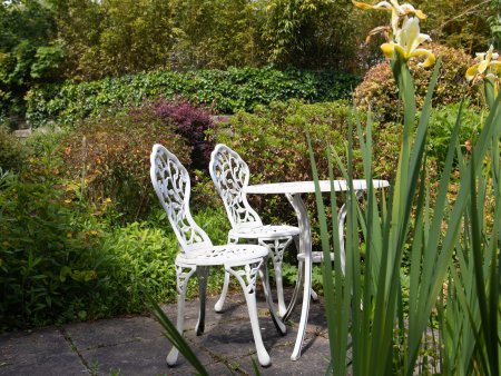 Note: There are steep, stone steps in the garden leading up to the enclosed lawn area, please take care