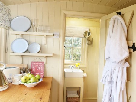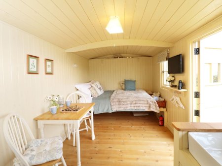A beautifully presented shepherds' hut near to the town of Wadebridge. Perfect romantic escape with a private wood-fired hot tub (fire logs are provided). Studio accommodation with a separate shower room.