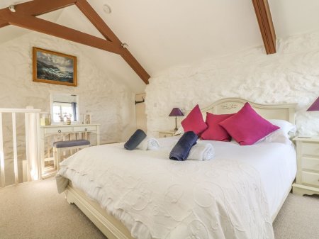 Downstairs there is a single bedroom with vaulted beams, a well equipped kitchen and a comfortable sitting area where you can throw open the French doors and enjoy alfresco dining on the patio area within the garden. This romantic escape enjoys countryside living and the south facing garden affords views across the moorlands and out to St Michael's Mount and the Lizard Peninsula on a clear day. Nature lovers will enjoy rambling along the paths leading out to a rugged terrain amongst heather and moorland flowers.