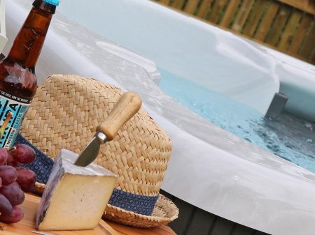 There is a lovely bedroom with its sumptuous linens and en-suite bathroom. You won't want to move from the comfy sofas in the spacious and bright open plan kitchen and living area but step outside and you can relax in your very own, private hot tub with a much deserved cool drink.