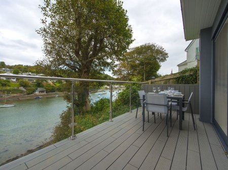 This fabulous detached contemporary cottage is set into the riverbank on the waterside in Noss Mayo. With amazing views up and down the River Yealm and a stylish interior, it is a relaxing waterside retreat for couples. From your car, head through a gate and down 17 metal, open tread steps to the front door.
