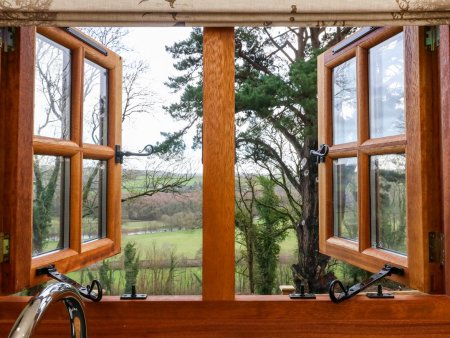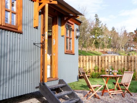 Wonderful shepherd's hut set alongside the River Taw, on the fringes of High Bickington, in Devon. Woodburner. Hot tub.