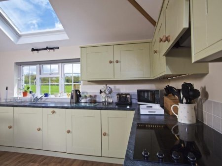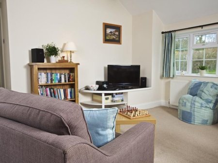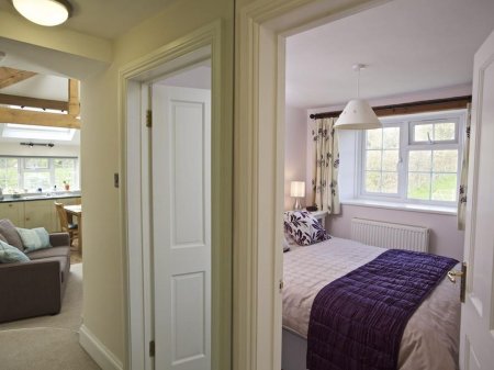 A lovely cottage annexe set within rural Devon countryside near the small parish village Woodleigh, not far from the town of Kingsbridge, and the exclusive seaside town of Salcombe. Cloverwell has beautiful countryside views, which can be taken in from the small lawned garden while enjoying a summer BBQ. Enter the property into the lobby, and up to the small flight of stairs to the cosy first floor open living area.