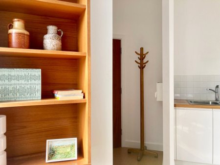 The flat has original mid-century furnishings, wide screen TV, a wealth of plants to bring the outdoors in and a neat, well-presented shower room. Up on the second floor is a bright, spacious and beautifully furnished double bedroom with gable roof and exposed beams. There is a shared, ground floor utility area with flagstone floors, washing machine and tumble dryer.