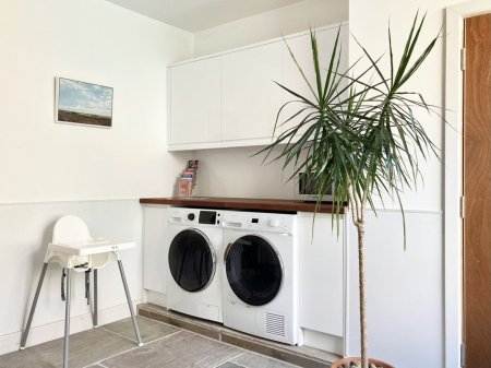 Electric oven and hob, microwave, fridge, air fryer, shared washing machine, shared tumble dryer