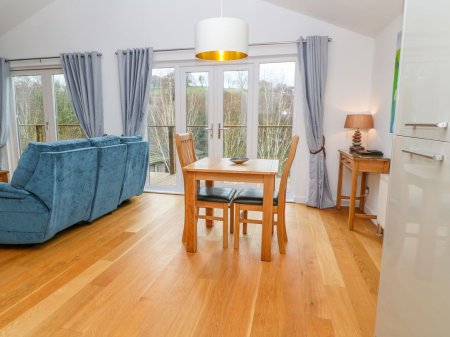 The sitting area features an electronically operated recliner sofa and big screen TV, ideal for cosy evenings in. Large patio doors lead onto your own decked terrace, offering privacy for morning coffees, sunset drinks or quiet moments immersed in nature. The pristine, modern kitchen is fully equipped for easy self catering, though youâll find no shortage of excellent restaurants, pubs and seafood spots in the picture perfect harbour towns and traditional fishing villages nearby.