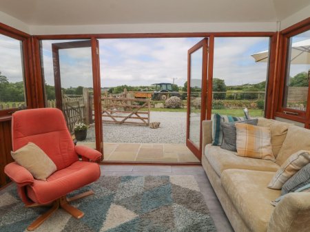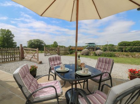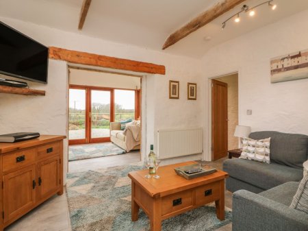 Discover a homely sitting room to relax in with a corner sofa to cushion you, a woodburning stove to keep you warm and a TV with Sky for excellent entertainment. Sit in the bright conservatory where a sofa and armchair provide ample space to relax with a good book whilst the beautiful countryside provides the perfect backdrop. Travel along the hallway beneath the exposed timber beams in the ceiling, coming across the charming twin bedroom with windows overlooking the farmyard, a TV and a quirky clothes rail upcycled from an old pipe.