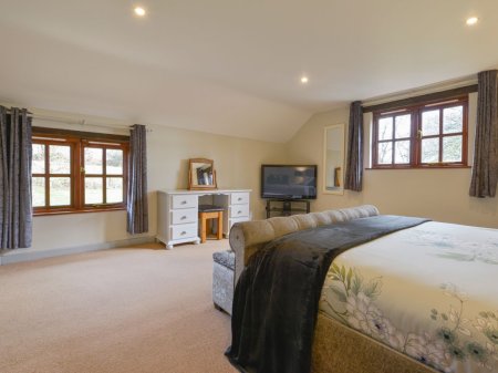 The charming interior is continued into the two well-presented bedrooms, comprising of a king-size double and a twin. Each evening you can look forward to retiring to the refreshing interior of the two bedrooms, where you will be delighted by the quality linens and the ample storage and space. During the warmer months, spend a moment or two within the garden area, where you can enjoy a spot of alfresco dining whilst your canine companion roams the large lawn area, with views across the countryside setting to enjoy.