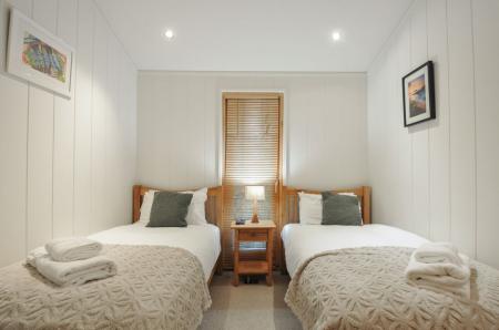 Two bedrooms: 1 x king-size with TV and en-suite walk-in shower, basin, heated towel rail and WC, 1 x twin