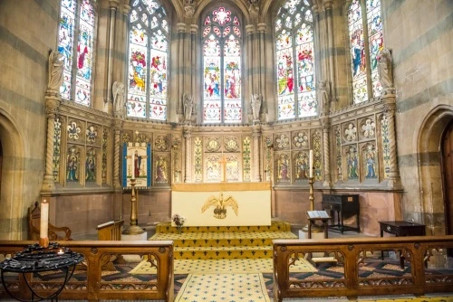 The church was extended in 1870 by SS Teulon in 1870 with the addition of a chancel and rounded apse. A later addition was the chancel screen, installed in 1898 to celebrate Queen Victoria's Jubilee.