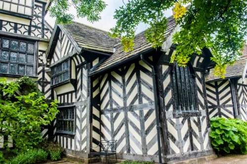 This is "black-and-white" country, a tribute to the many surviving half-timbered buildings which dot the countryside. Little Moreton Hall at Congleton is perhaps the finest example of a half-timbered manor in England, but unheralded examples of centuries-old architecture are scattered like hidden jewels in numerous Cheshire villages.