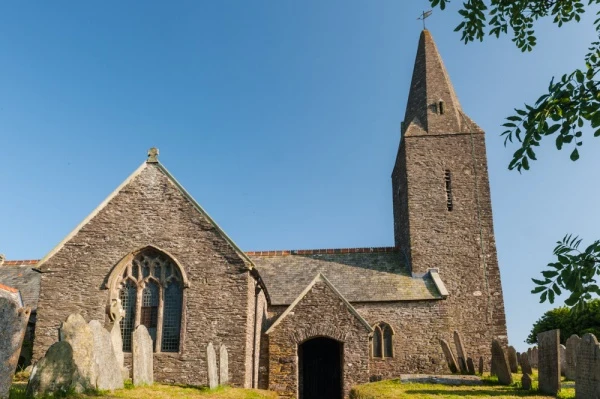 The remainder dates to the middle of the 13th century, including the tower and broach spire - an unusual feature in Cornwall. It was rededicated in 1259 by Bishop Walter de Bronescombe, and rededicated again in 1321 after the building was extended with transepts.