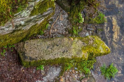 From the battlefield, the trail leads through more woodland, along the River Camel to a viewing platform where you can look down on Arthur's Stone. You can clearly see the inscription on the stone, though the Ogham script is much more difficult to make out.