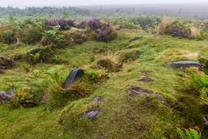 Be prepared for whatever the weather throws at you; it can be extremely misty on the moors at times, as we discovered, and the ground will be muddy after rain. The walk takes about 30 minutes from the parking area, so plan on at least an hour round trip.As for the burial mound itself, it was overgrown with bracken in mid-September when we visited, but the square outline was clearly visible and you can climb onto the earthen wall of the chamber to get a better sense of the design. The stones supporting the cist and side walls are easy to make out, and you can easily trace the course of the packhorse trails.