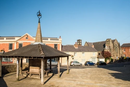 The most distinctive building in Melbourne is the Market Cross, located on the west side of the Market Place. The Market Cross dates to 1889 and was designed by James Wright. It was built by public subscription to celebrate Queen Victoria's Jubilee.