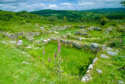 See the remains of an isolated Dartmoor village in a hollow between Greator Rocks and Hound Tor, with the ruins of at least four 13th-century longhouses and associated barns.