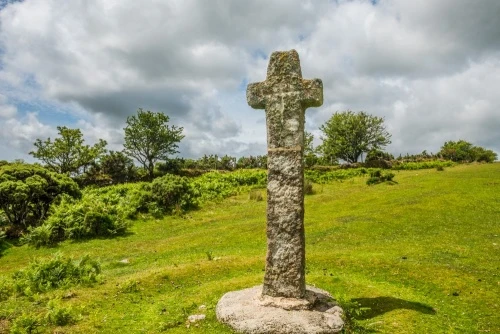 There can be few Dartmoor crosses easier to reach than Cadover Cross. It stands in an open field, easily visible from the large parking area on the south side of the River Plym, directly beside Cadovewr Bridge. To reach the cross, simply walk across the bridge to the north bank and take the signposted track that leads north and west across the slope of the hill. The cross is visible throughout the stroll.