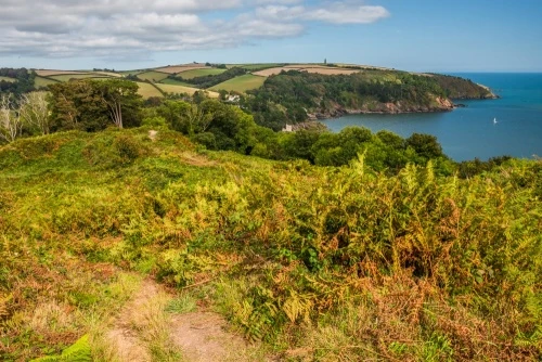 It takes about 10 minutes to reach the castle earthworks. The going is steep in places, but not difficult. Your reward for your exertions is a wonderful view towards Dartmouth and an even better view over the rugged coastline to the south.