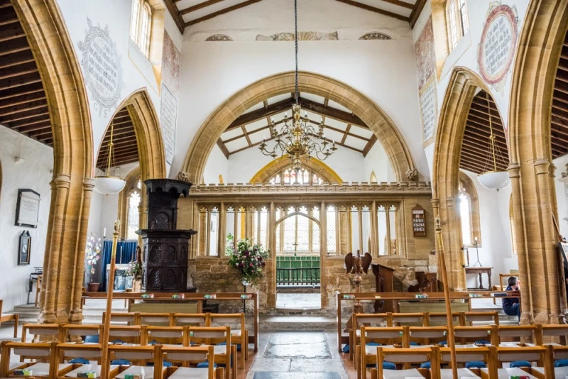 The oldest part of the church is the 14th-century chancel. Look for a pair of original lancet windows by the altar, and a 14th-century piscina set into the south chancel wall. One either side of the altar are faded medieval wall paintings. On the south side is the Annunciation, while on the north is a series of four scenes from the life of St John the Baptist. There are more very faded wall paintings in the nave.