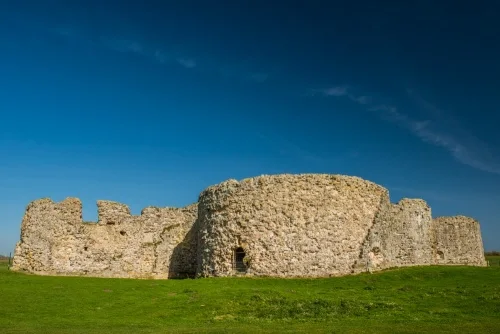 Camber Castle is one of a series of forts built by Henry VIII along the south coast to counter the threat of a French invasion during the 1530s. The sea originally lapped at the foot of the castle, but silting over the centuries means that Camber now stands alone in a low-lying field over a mile from the shore.