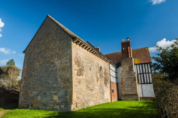 One of two intriguing Saxon churches in the small village of Deerhurst, Odda's Chapel is a simple two-cell church composed of a nave and chapel. It was in use until the 13th century and then probably stood derelict for some time before being made part of later buildings. In the 16th or 17th century it was incorporated into Abbots Court, a large farmhouse. The chapel nave was used as a kitchen and the chancel as a bedchamber.