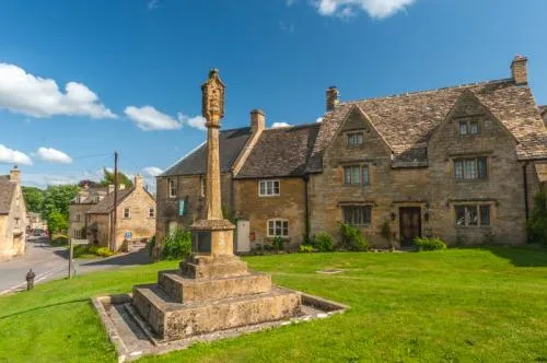 The village lies beside a small stream, a tributary of the River Windrush. There was a Saxon settlement here, belonging to the Sherrif of Gloucestershire, but after the Norman invasion, the estate passed to the crown.