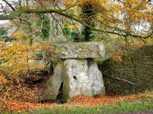 Another version of the site origin suggests that the chamber was built around 1736, reusing stones from an existing tomb. When a hole was excavated to support the Gloucestershire stone, the bones of three skeletons were unearthed along with a coin from the reign of James II.