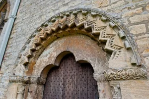 The first thing you see when approaching the church is a series of fruit trees lining a walkway to the north door. The doorway is a beautifully carved piece of Norman craftsmanship, built about 1180. It has a plain tympanum which has been rather oddly cut to create a trefoil pattern over the door, which is now blocked.