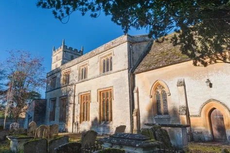 St Mary's Church is a beautiful Norman building with many Tudor features, located beside the manor house in the quiet Cotswold village of Great Barrington.