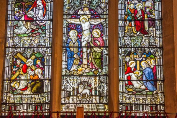 The man and the woman are thought to have been important church donors, though their identities are unknown. Replicas of the figures have been recreated in a nearby window at a height that makes them easier to see. Also in the north aisle is a painted triptych dating to 1928.