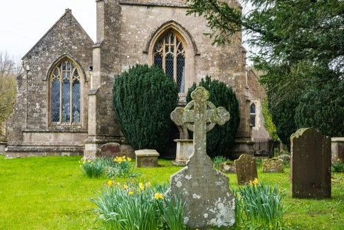 St James' Church stands immediately beside the Cotswold Way long-distance footpath and is a popular stopping place for walkers on the path.