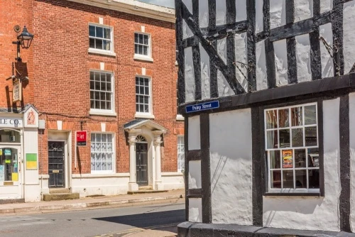 The wealth of outstanding timber-framed shops and houses is a testament to the town's wealth throughout the late medieval period and into the 17th and 18th centuries. Many Georgian and Victorian shop fronts on Broad Street hide much older timber-framed buildings.