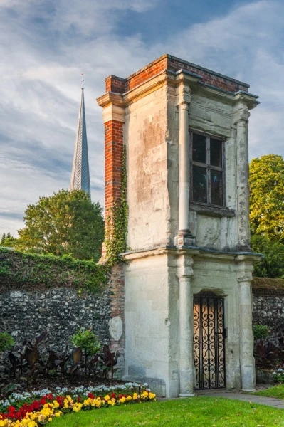 In a park setting near Hemel Hempstead's historic Old Town stands one of the town's most peculiar and intriguing historic buildings, the Charter Tower, all that remains of a Tudor house built by the wealthy Combes family. The Tower overlooks a walled garden on the site of Bury House.