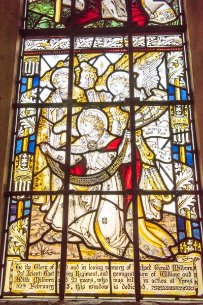 In the east window of the Bore Place Chapel is a fragment of medieval glass. Near the font is a modern stained-glass window installed to commemorate the Millennium.