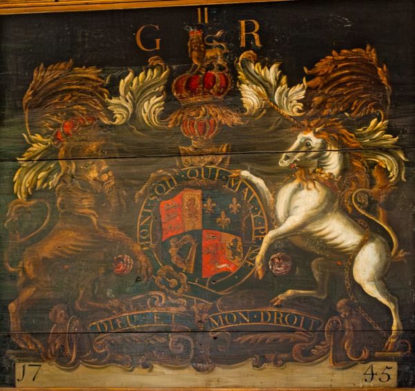 The final highlight is a royal coat of arms to King George II, dated 1745.
